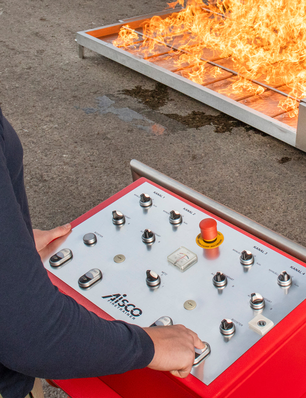 The F4 Control Panel is AISCO’s high-end solution for advanced fire safety training. With four independently controllable channels, it enables complex, realistic scenarios—either synchronized or staggered. The robust control unit can be flexibly combined with various fire trainers and is ideal for larger training environments such as fire training houses or modular container systems. Designed for professional use by fire departments, industrial safety teams, and training providers.